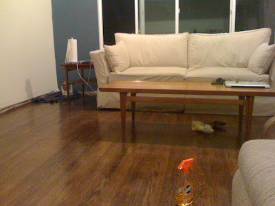 The floor guys arrived this morning. We won’t be able to go anywhere in the upstairs floor until Saturday! :O I am so excited to go home today and see what they’ve done.